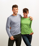 preshrunk 100% cotton jersey • 4.5-oz. • deluxe 30's Softstyle yarns • seamless double-needle 1/2" rib-knit collar • taped neck and shoulders • feminine tapered fit with side-seam construction • double-needle sleeve and bottom hems • quarter-turned to eliminate center crease • Sizes: S-3XL