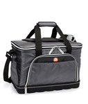 420-denier diamond weave polyester • 36-can capacity • front-zippered gusseted and slash pockets • main compartment has pull-tab and self-adhesive opening • dual side pockets • padded adjustable shoulder strap with Igloo bottle opener • molded EVA bottom • padded side handles • enhanced insulation • PVC-free • removable liner is leak-resistant • heat-sealed • antimicrobial and dishwasher-safe • 9"w x 4"h approx. imprint area • 4 1/2" diameter max. embroidery area • Sizes: 9"w x 12"h x 17"L