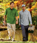 100% ripstop polyester • 2.2 oz. • shield+ fabric protector repels water and oil-based stains • UPF 40+ sun protection blocks 97.5% of harmful UV rays • vented back with mesh lining • industrial strength heat-resistant buttons • convertible sleeves • Sizes: S-3XL
