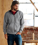 outer: 80% cotton/20% polyester fleece (7.7-oz.) • lining: 60% cotton/40% polyester (5.6-oz) • thermal knit lining in body and in drawstring hood • hand-warmer pockets • full zip front • Sizes: S-3XL