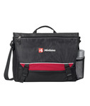 600-denier polyester • adjustable shoulder strap • padded grab handle • large main compartment with buckle closure • padded interior laptop pocket (fits a 15" laptop) • multi-function organizer under front flap • zippered front pocket and side tablet holder • side mesh water bottle pocket • 8"w x 3 1/2"h approx. front pocket center imprint area • 4 1/2"w x 3"h approx. front pocket center embroidery area • 8"w x 3 1/2"h approx. front pocket center heat transfer area • Sizes: 4 1/4"w x 11 1/2"h x 16"L
