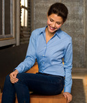 easy-care 55% cotton/45% polyester • 3.4 oz. • wrinkle-resistant • lightweight • feminine fit • spread collar • top-fused center placket • collar and cuffs • Sizes: S-2XL